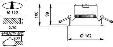 Il foro di un apparecchio differisce dalle dimensioni e si riferisce specificatamente alla dimensione del foro nel soffitto necessario per fissare saldamente la sorgente luminosa durante l'installazione.
