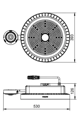 Descrizione Philips Highbay LED BY122X Coreline G5 Aluminium Grigio 203W 30000lm 85x85D - 840 Bianco Freddo | IP65 - Interact Dimmerabile