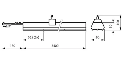 Descrizione Philips LED Fila continua Coreline LL234X 56W 9000lm 67x67D - 840 Bianco Freddo | 3400mm - 5 poli