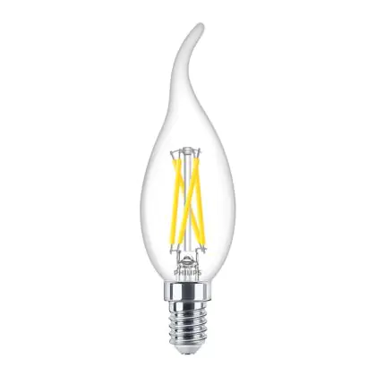 Descrizione Philips MASTER LED E14 Piegato-tip Candela Filamento Chiara 2.5W 340lm - 922-927 Dim To Warm | Miglior Resa Cromatica - Dimmerabile - Sostitutiva 25W