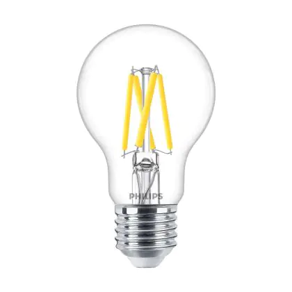 La Philips Master LED E27 Pera Filamento Chiara 3.4W 470lm - 922-927 Dim To Warm | Miglior Resa Cromatica - Dimmerabile - Sostitutiva 40W è la perfetta sostituzione per la tua lampada convenzionale 40W con attacco E27 grazie alla sua tecnologia LED. Passare a LED ti offrirà tanti vantaggi!