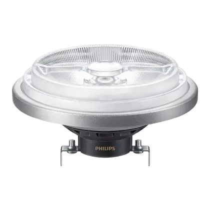La Philips MASTER LED Faretti G53 AR111 10.8W 620lm 9D - 930 Luce Calda | Miglior resa cromatica - Dimmerabile - Sostitutiva 50W è la perfetta sostituzione della classica lamapda alogena50W G53 con colore della luce 930 Luce Calda. Questa lampadina ha una forma "Aluminium Reflector" (Spot) con diametro di 111mm e gli attacchi hanno una distanza di 53mm l’uno dall’altro. La lampada G53 è molto più sicura in ambienti umidi rispetto le lampade alogene a 230volt, le lampade G53 funzionano a 12V. Perciò c’è bisogno del trasformatore per avere un voltaggio di 12V. Puoi trovare i trasformatori adatti in "Accessori" su questa pagina prodotti. Di quale trasformatore hai bisogno, dipende dal numero di lampade che vuoi connettere. Il nostro servizio clienti puoi aiutarti con la scelta. Passare a LED ti offrirà tanti vantaggi!
