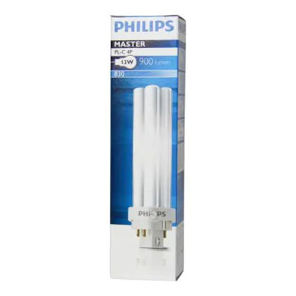 Philips PL-C 13W 830 4P è una lampada fluorescente compatta a basso contenuto di mercurio efficiente con attacco a 4 pin G24q-1. Questa lampada firmata Philips assicura prestazioni luminose fino a 10.000 ore che equivalgono a 3 anni con un utilizzo giornaliero di 8 ore.