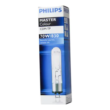 Le Philips CDM-TP 70W 830 PG12-2 (MASTERColour) sono lampade a scarica compatte con protezione tubolare che emettono una luce brillante. Queste lampade presentano una potenza di 70W e sono dotate di attacco del tipo PG12-2. Tali lampade a scarica compatte hanno una vita media di 16.000 ore e assicurano stabilità di colore per tutta il periodo di vita. La resa dei colori delle Philips CDM-TP 70W 830 PG12-2 (MASTERColour) é molto buona grazie all'indice di resa cromatica di 80-89Ra: questo sta ad indicare che le caratteristiche degli oggetti illuminati sono poste in risalto in maniera ottimale.