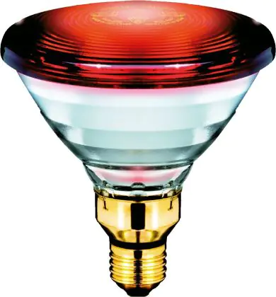 Questa lampadina Philips è una lampada a infrarossi. La radiazione infrarossa di questa lampada non può essere vista a occhio nudo ma produce una luce calda. Ci sono diversi tipi si sistemi di illuminazione a infrarossi, come, per esempio, questo faretto.