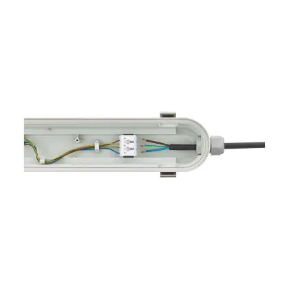 Questo apparecchio può essere usato sia in spazi interni che in spazi esterni, poiché ha indice di protezione contro l'ingresso di acqua e polvere IP65. In generale, un apparecchio con IP44 è resistente a schizzi di acqua e umidità, e può quindi essere installato in spazi esterni molto umidi o esterni riparati, come sono una tettoia. Un apparecchio che invece verrà esposto a intensi getti di acqua deve avere almeno IP54. Questa lampada ha anche un indice di resistenza a urti e impatti di IK08 - 5 Joule.