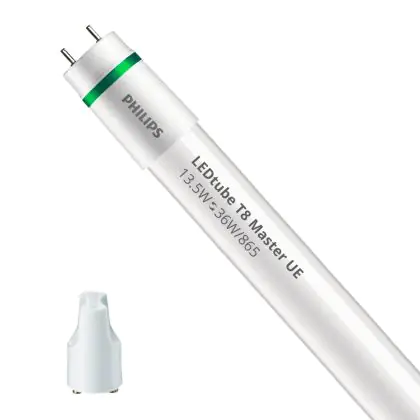Il Philips Tubo LED T8 MASTER (EM/Mains) Ultra Efficiency 13.5W 2500lm - 865 Luce del Giorno | 120cm - Sostitutiva 36W è l’alternativa perfetta per il tubo fluorescente standard 36W nelle plafoniere con un reattore. Con questo tubo LED hai una garanzia di una vita media utile molto lunga e 5 anni Lampadadiretta.it di totale garanzia. .