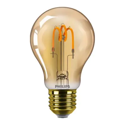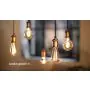 Questa lampadina a filamento LED Vintage Philips E27 presenta un design originale e memorabile. La decorazione interna realizzata con un filamento LED, la finitura colore oro e la tonalità della luce extra calda creano una delicata armonia che contribuisce a rendere questa lampadina unica nel suo genere. È possibile apprezzare la sua bellezza sia da accesa che da spenta: la soluzione ideale per un’installazione decorativa.