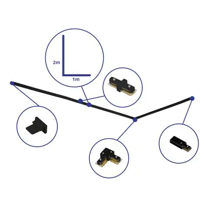 Rail Set 1-Fase L 1 x 2 Metro Nero | incl. Tappo Di Chiusura, Connettore di Alimentazione e L -Connettore