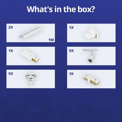 | Nome del fabbricante | Complete Straight 2-meter 1-Phase Track Set White incl. 5x Spot fixture + GU10 2700K 3W Dim – 2x 1 M | |