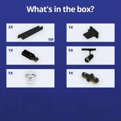 | Nome del fabbricante | Complete Straight 2-meter 1-Phase Track Set Black incl. 5x Spot fixture + GU10 2700K 3W Dim – 2x 1 M | |