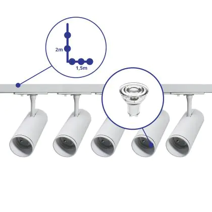 | Nome del fabbricante | Complete L shaped 1-Phase Track Set White incl. 5x Spot fixture + GU10 2700K 3W Dim – 1.5 x 2 meters | |