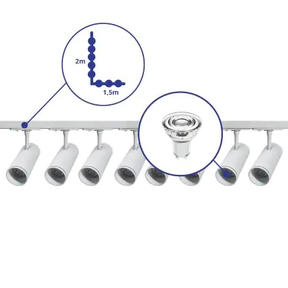 | Nome del fabbricante | Complete L shaped 1-Phase Track Set White incl. 8x Spot fixture + GU10 2700K 3W Dim – 1.5 x 2 meters | |