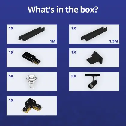 | Nome del fabbricante | Complete L shaped 1-Phase Track Set Black incl. 5x Spot fixture + GU10 2700K 3W Dim - 1 x 1,5 meter | |