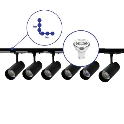 | Nome del fabbricante | Complete L shaped 1-Phase Track Set Black incl. 6x Spot fixture + GU10 2700K 3W Dim – 1 x 1 meter i | |