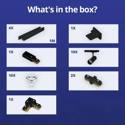 | Nome del fabbricante | Complete L shaped 1-Phase Track Set Black incl. 10x Spot fixture + GU10 2700K 3W Dim – 2 x 2 meter | |